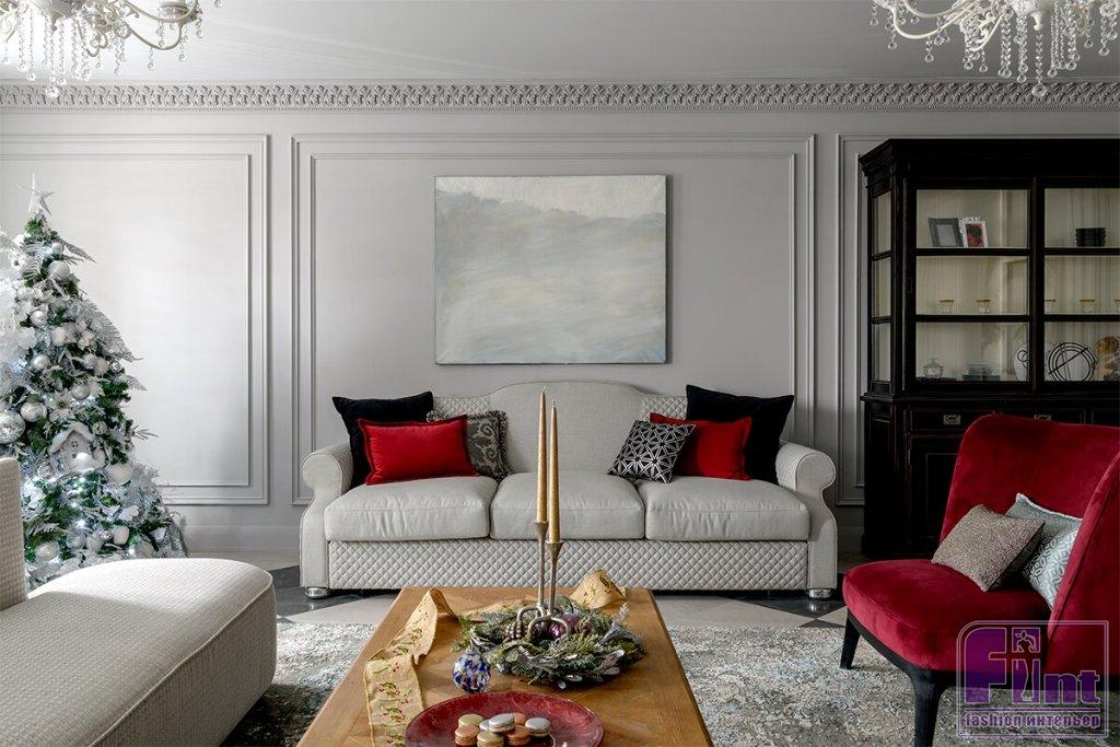 Установленное в гостиной кресло глубокого винного цвета придало интерьеру выразительности. Просторное и удобное, оно прекрасно подходит для продолжительного отдыха. Изящные классические формы, дубовое основание кресла и приятная на ощупь ткань в благородном цвете– все эти детали обыграли спокойный дизайн комнаты в светлых тонах.