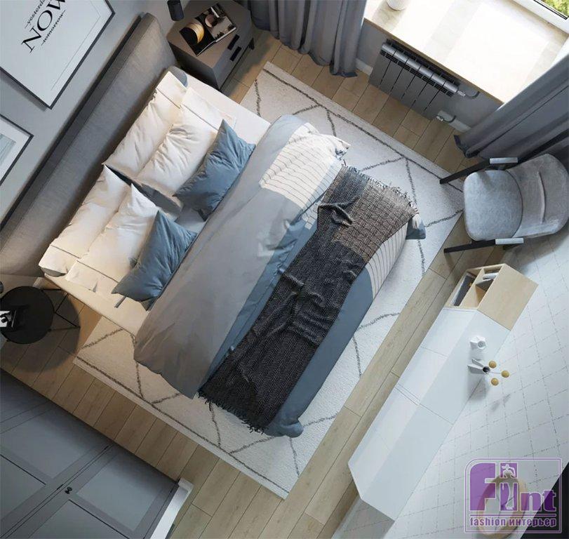 «Интерьер выдержан в светлых тонах, присущих стилю «сканди». Практически вся мебель монохромная, в белом или светло-сером цвете. Исключение составляет лишь мебель в спальне: там использованы более тёмные оттенки серого цвета. Уют скандинавского стиля создают многочисленные постеры, умело подобранный текстильный декор, тщательно продуманные отдельные элементы мебели из дерева», — перечисляет автор проекта.