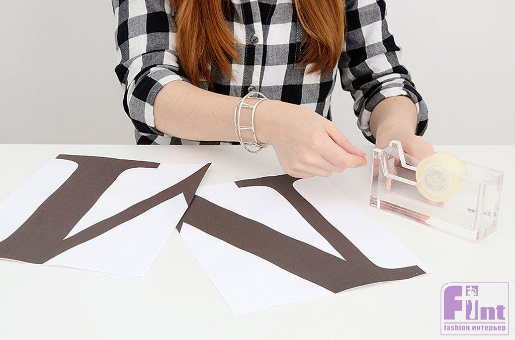 Начните с распечатки буквы, которую вы выберете в качестве монограммы. Нашу букву «М» пришлось распечатывать на двух стандартных листах А4. Предварительно попробуйте применить к вашей букве различные шрифты, но помните, что слишком тонкие элементы буквы будет довольно трудно воплотить в жизнь при помощи винных пробок. Поэтому, лучше использовать стандартные шрифты, например, Times New Roman. Увеличьте свою букву для печати до нужного размера и распечатайте её. Если вы, как и мы, печатали букву на нескольких листах, склейте их обычным канцелярским скотчем.
