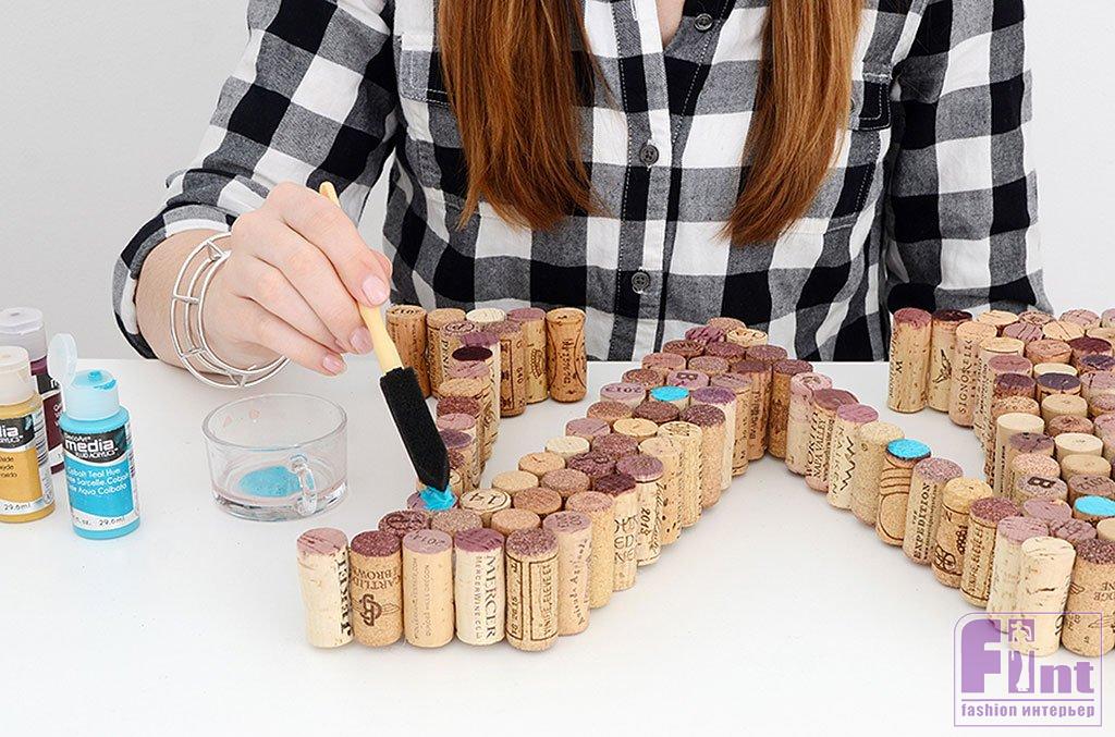 Используя технику создания букв из винных пробок, вы можете пойти дальше и, если позволяет размер комнаты, сделать из пробок целое слово или даже фразу! Цветовая гамма может быть подобрана под цветовую схему вашего интерьера, что делает этот аксессуар практически универсальным для интерьера любого стиля и цвета.