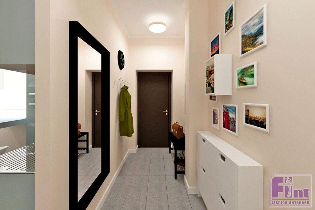 Зеркальный шкаф или зеркало в узком коридоре — приём, работающий в любом интерьере. Глянцевые поверхности отражают свет, а значит, зрительно увеличивают пространство вдвое. Особенно актуально для самых тёмных углов, таких как прихожая или узкий коридор. Обычно такое зеркало прекрасно смотрится на торцевой стене, но и на длинных боковых стенах зеркала также будут отлично выполнять свою роль «расширителя пространства».