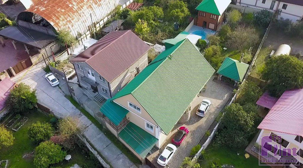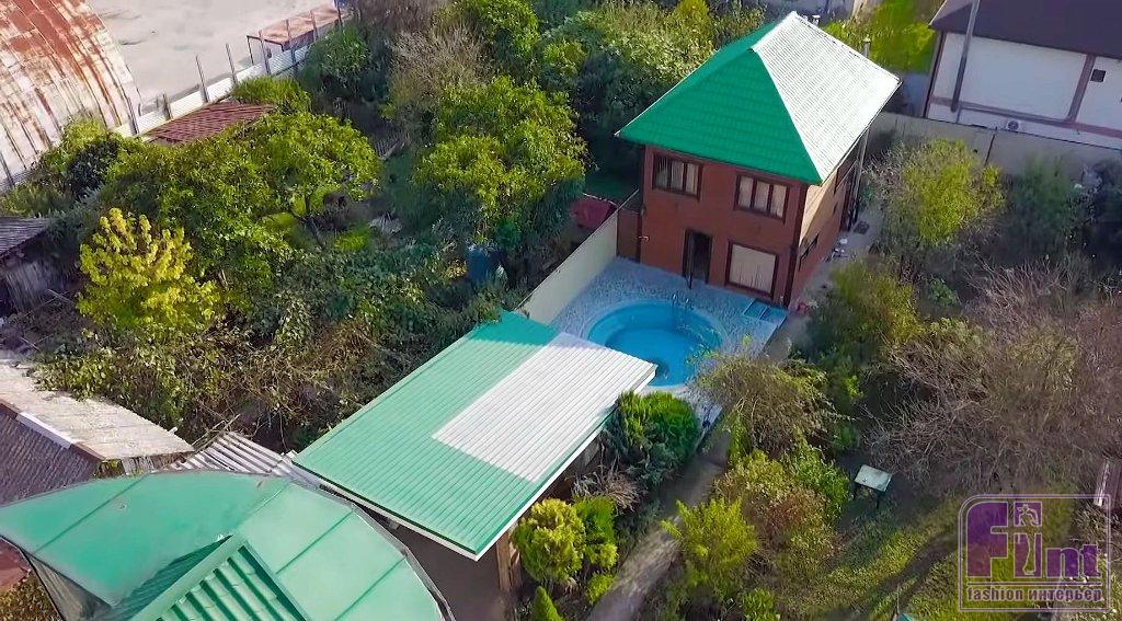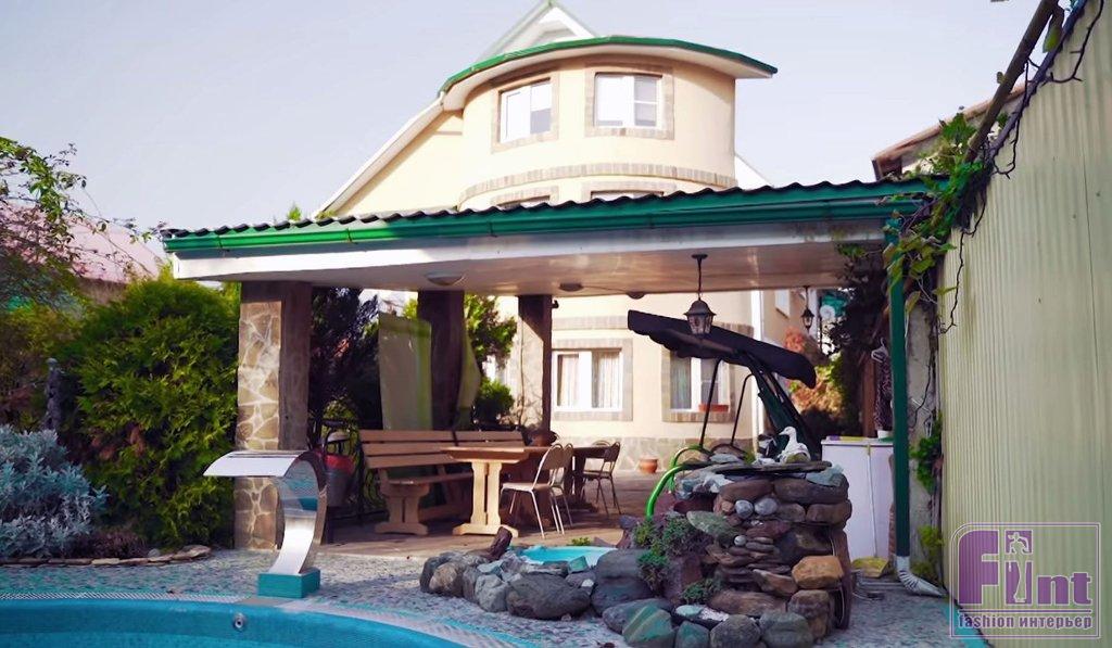 Уютный двухэтажный дом родителей Михаила Галустяна расположился в горном районе, неподалеку от Сочи. По словам Михаила, огромным плюсом этого места является его климат, при котором летом там не жарко, а зимой не холодно. На просторном заднем дворе раскинулись заросли экзотических деревьев и кустарников, любимые огороды мамы Михаила, Сусанны, а также расположилась летняя кухня, загон для курочек и гостевой домик, построенный из бруса. Нашлось место и для компактного бассейна и небольшого фонтана. Как раз рядом с ним и находится летняя открытая беседка, которую полностью переделали дизайнеры телевизионной программы.