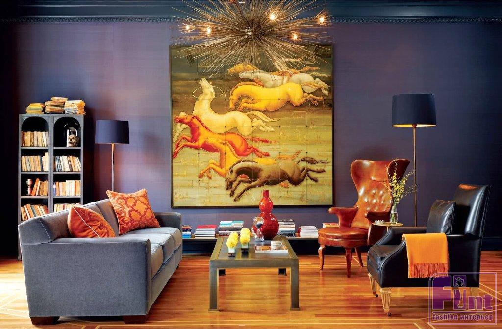 Цветовая гамма произведения искусства, которое вы выберете, должна гармонировать с остальной частью комнаты. Произведение искусства, конфликтующее с мебелью и декором, не сделает комнату более целостной и приветливой. Это не обязательно должно быть буквальное совпадение, но всё же должны присутствовать ключевые элементы, дополняющие друг друга. И помните об обратном приёме: если найдено идеальное произведение искусства, без которого никак невозможно обойтись, можно подумать, как изменить палитру вокруг него для лучшей симметрии и сочетаемости интерьера с произведением искусства.