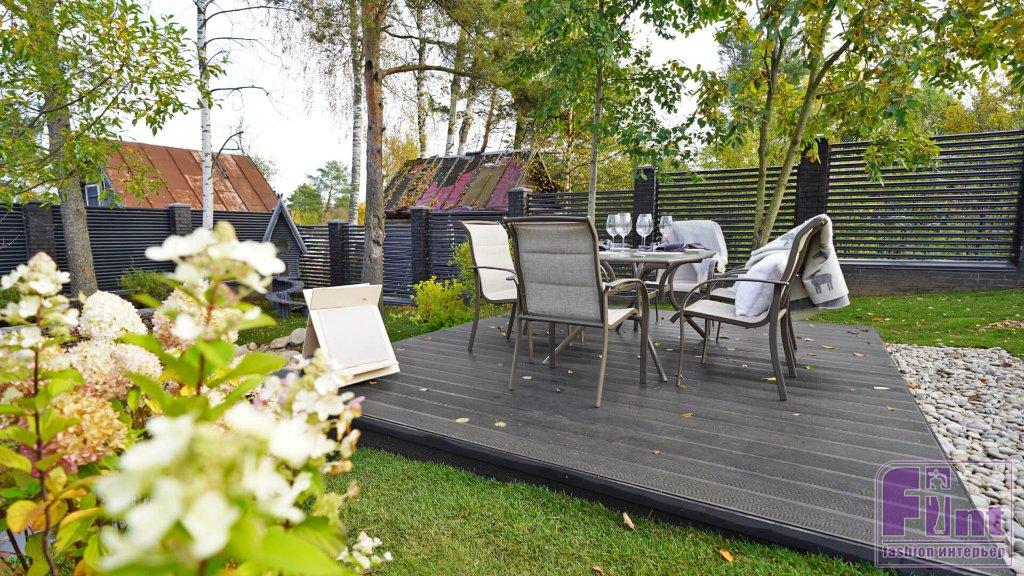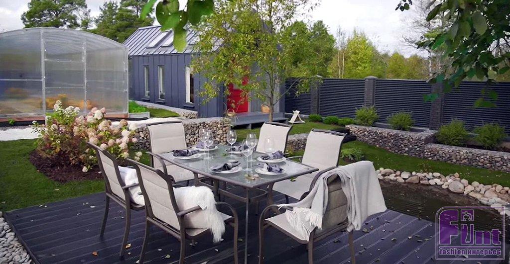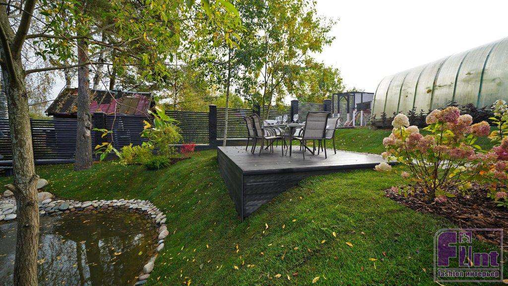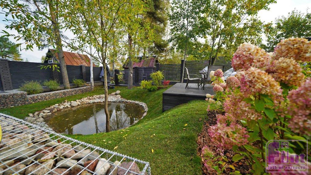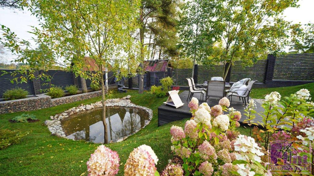 Заброшенный пруд на территории Елены почистили, сделали дренаж из геотекстиля и гравия, укрепили берега и установили интересный фонтан-родничок в виде камня, благодаря которому поддерживается постоянная циркуляция воды в обновлённом пруду. Рядом с водоёмом построили специальную террасу на сваях, на которой теперь будет удобно собираться всей семьей и встречать гостей.
