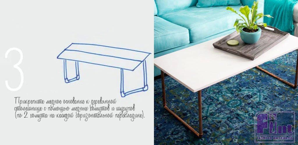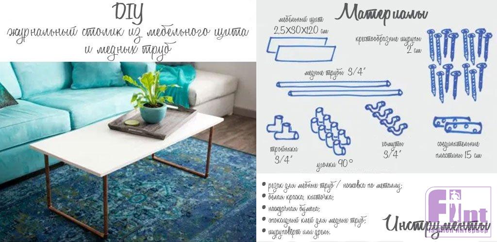 DIY журнальный столик из мебельного щита и медных труб