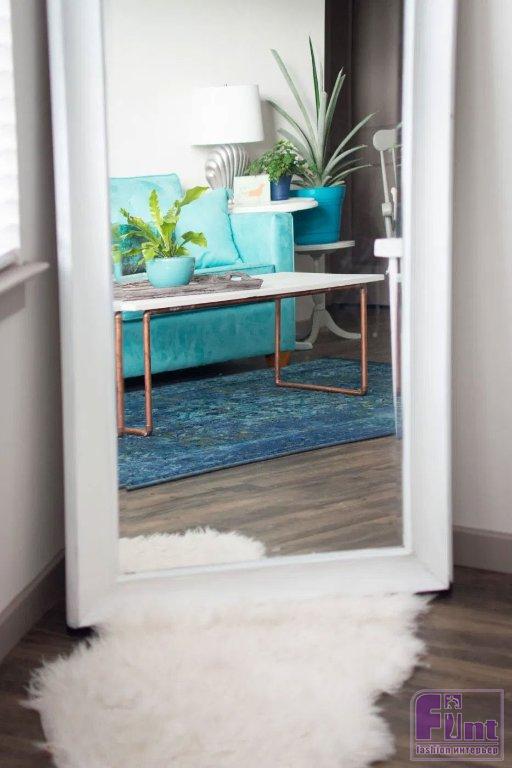Лёгкий, современный и по-настоящему шикарный журнальный столик готов! Его действительно очень просто сделать. Мы смогли сделать заготовки и собрать наш журнальный столик примерно за один час! Если вы найдёте размеры нашего столика не подходящими для вашей гостиной, вы всегда можете изменить параметры мебельного щита или длину труб. Укоротив трубы, можно сделать столик более низким или более высоким, на ваше усмотрение. Важно, чтобы по высоте столик подходил к вашему дивану или креслам, рядом с которыми он будет стоять.