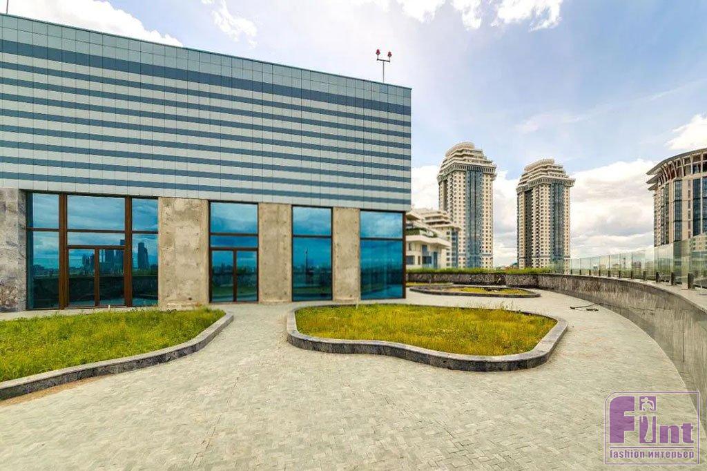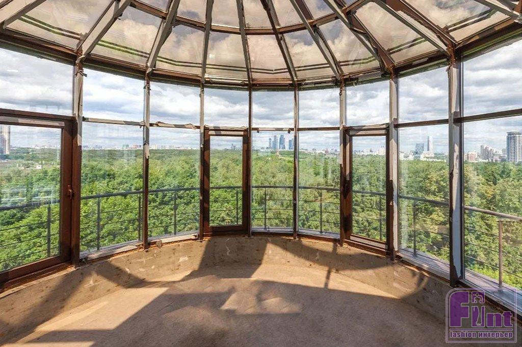 Пентхаус без отделки продаётся в жилом комплексе на Мосфильмовской улице. Свободная планировка позволяет организовать просторную гостиную с высотой потолка до 8 м под стеклянным куполом, девять спален, закрытый бассейн с зоной спа, бильярдную и зоны отдыха с барбекю на террасе. Из окон открывается красивый вид на главное здание МГУ, комплекс «Москва-Сити», Мосфильмовский пруд и природный заказник «Долина реки Сетунь.