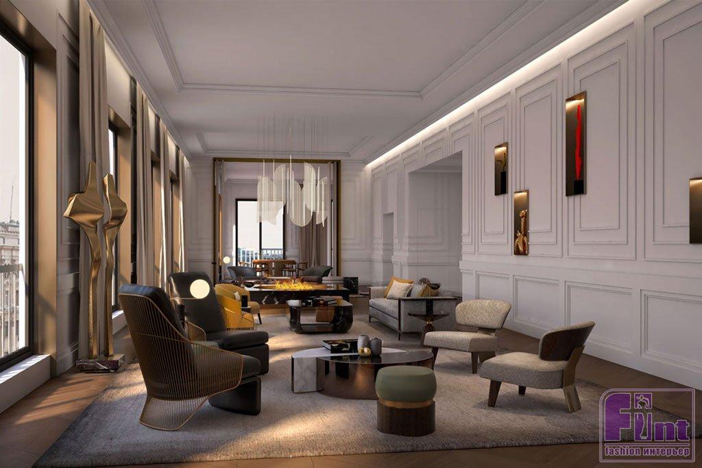 Пентхаус площадью 1 тыс. кв. м с индивидуальной входной группой и собственным лифтом выставлен на продажу в комплексе Fairmont Vesper Residences. Квартира с потолками 4 м занимает весь девятый этаж. Из окон пентхауса открывается вид на Тверскую улицу и Триумфальную площадь. Дизайн интерьеров в стиле нью-йоркской эклектики создал Дэвид Роквелл.