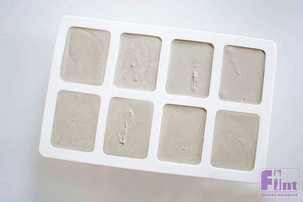 Залейте приготовленную цементную смесь в форму для льда и оставьте до полного высыхания. После того, как цементная смесь достаточно затвердеет, вытащите заготовки из формы и, при необходимости, обработайте неровности при помощи наждачной бумаги средней зернистости.