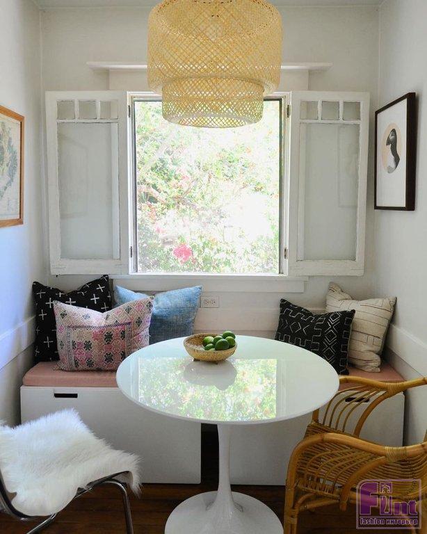 Сразу после переезда у пары даже не было денег на диван. Однако они соорудили кухонную скамейку из деревянных ящиков, которые им за ненадобностью оставили друзья. Предметы мебели и декора, которые сделаны своими руками, добавляют интерьеру самобытности. В частности, если у вас нет двух одинаковых прикроватных тумбочек для спальни, просто используйте вместо одной из них красивый стул, на спинку которого можно прицепить лампу на прищепке и использовать стул как полноценную прикроватную тумбу.