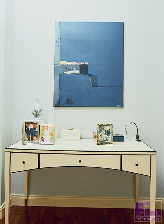 В итоге апартаменты Инны Маликовой получили приятную светлую цветовую гамму. Среди предметов мебели остались только самые необходимые. В целом в интерьере прослеживаются спокойные приятные цвета, которые местами дополнены яркими акцентами. В зоне гостиной стоит мягкое кресло удивительно приятного голубого цвета. Оно стало приятным дополнением в общую серо-бежевую стилистику интерьера.