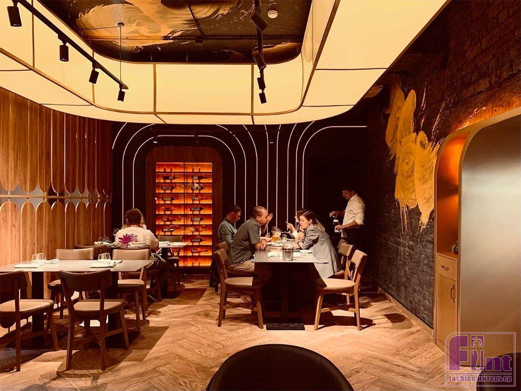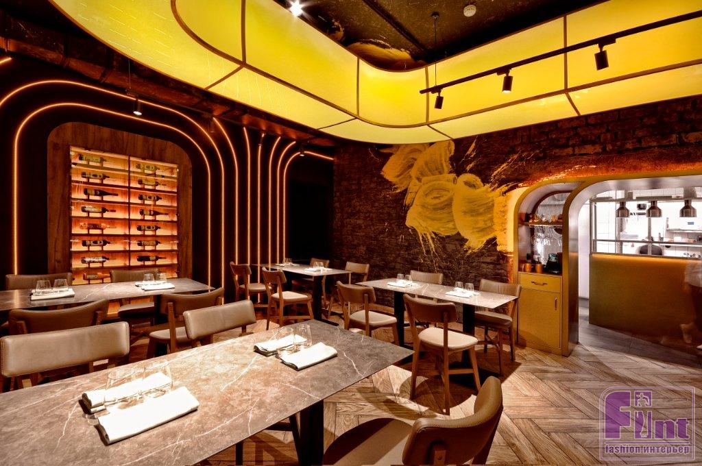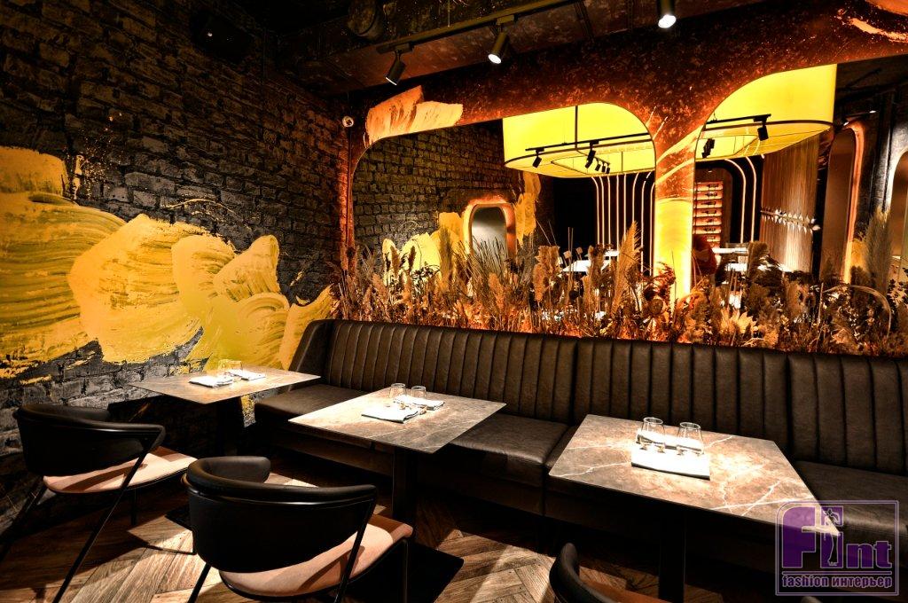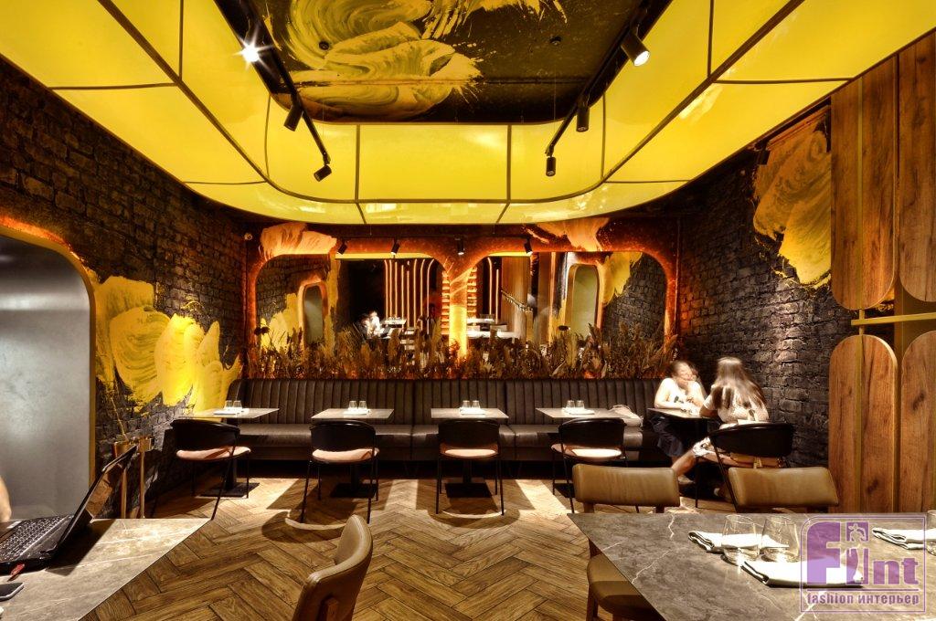 Задача по созданию нового дизайн-проекта осложнялась тем, что владельцы заведения попросили дизайнера максимально сохранить пространство, наполнив его совершенно новым смыслом, дизайном и настроением. Артемий, следуя пожеланиям заказчиков, оставил полы, стены и потолки, но, изменив цветовую схему интерьера, добился его полного преображения. В результате получился совершенно новый яркий и стильный интерьер на старой базе, как того и хотели заказчики.