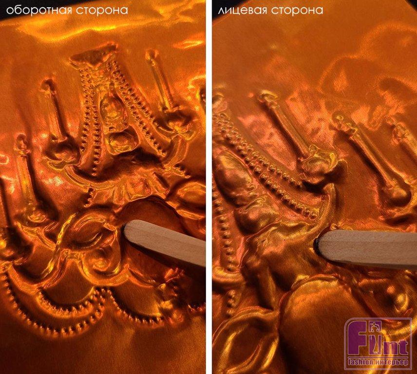 Особый способ домашнего изготовления чеканок базировался на том, что для основы советские люди придумали брать не настоящую толстую листовую медь или латунь, а что-то более тонкое, почти фольгу, в современном понимании. Такой тонкий материал можно было продавить любым подходящим предметом, и даже обычной шариковой ручкой. Но выполненная по такой упрощённой технологии и правильно оформленная чеканка внешне практически ничем не отличалась от настоящих чеканных панно. Сегодня мы предлагаем вам возродить старую технологию и сделать невероятно красивое чеканное полотно для украшения интерьера, потратив на это совсем немного средств и сил.