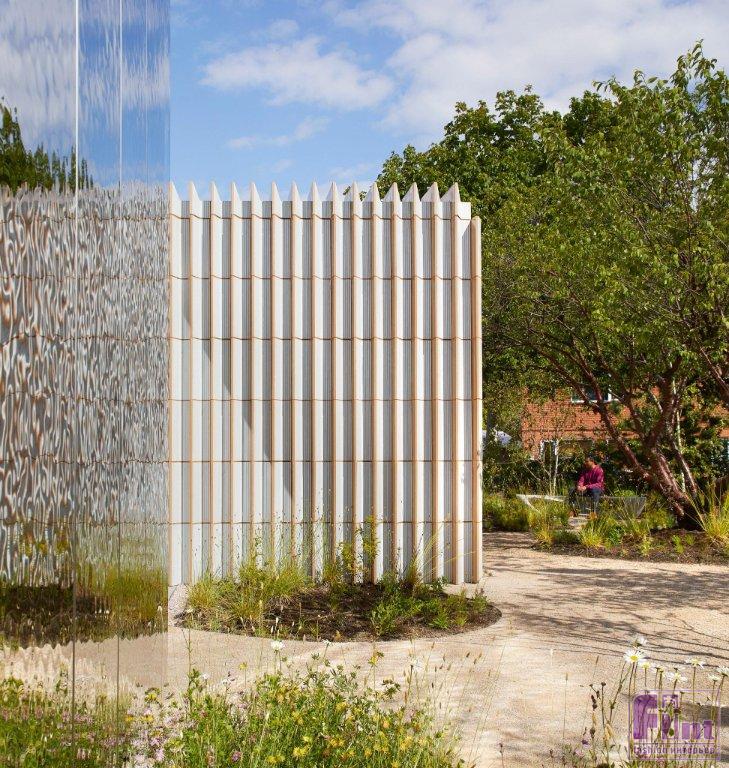 На днях бюро известного британского архитектора Аманды Ливит (AL_A) завершило работу над проектом для Центра Мэгги — сети центров доверия, помогающих больным онкологией. «Саутгемптон Мэгги» — это невысокий павильон, расположившийся на автостоянке главного госпиталя Саутгемптона. Здание окружили зелёным живописным садом, а от фасада невозможно оторвать взгляд.
