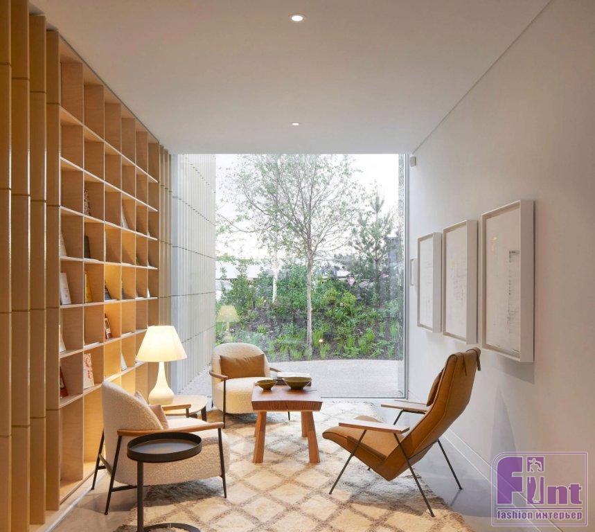 Из каждого номера есть прямой доступ в одну из зон сада: попасть туда можно через стеклянные раздвижные двери. Интерьеры выполнены в светлых и успокаивающих оттенках, установлены большие окна — таким образом дизайнеры сохранили фокус на окружающем зеленом оазисе, прочно связав его с внутренним пространством здания.