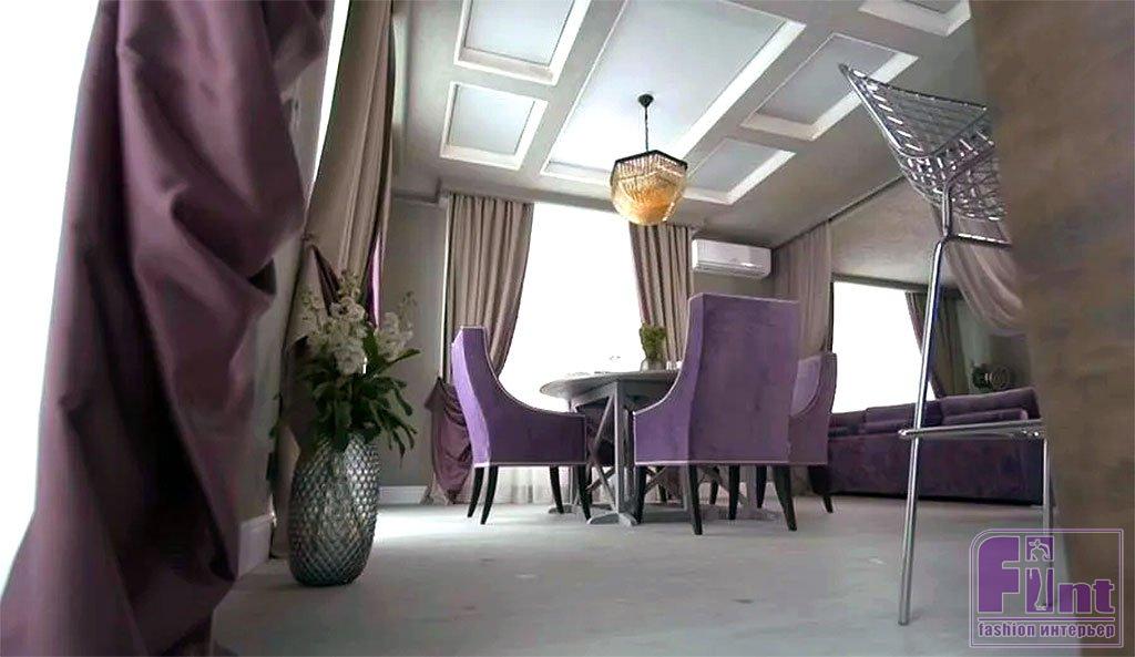 Муж Екатерины признался ведущей телевизионной программы, что мечтает о кессонном потолке – это потолок с углублениями, создающий впечатление дворцового интерьера. С помощью гипсокартона были созданы квадратные ниши, в них установили светодиоды, которые закрыли полотнами матового натяжного потолка. Выступающие части покрыли декоративной штукатуркой.
