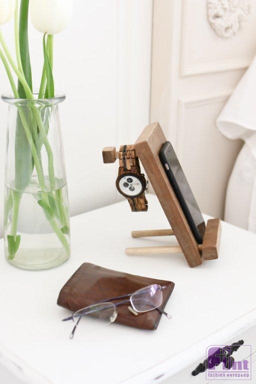 Осталось немного обработать подставку под телефон мелкозернистой наждачной бумагой, чтобы сгладить все неровности и заусенцы, и ваша прекрасная подставка под мобильный телефон и аксессуары готова! Теперь все нужные вам предметы будут всегда у вас под рукой и будут храниться на этой стильной и функциональной подставке для мобильного телефона и аксессуаров.