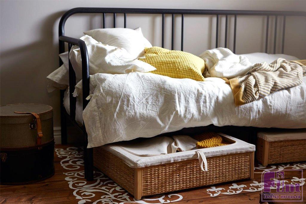 Решение: опрятные плетёные корзины и комоды с выдвижными ящиками смотрятся гораздо приятнее.