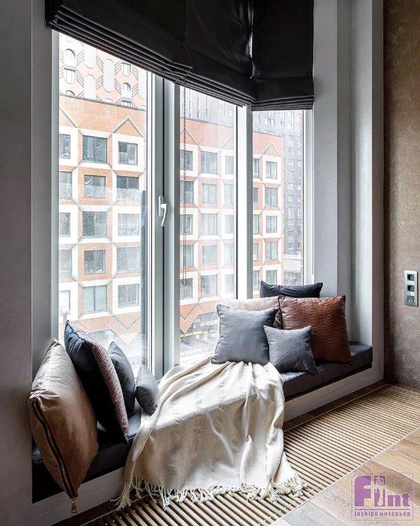 Дизайнер Анна Доброковская спроектировала квартиру площадью 82 кв. метра в московском ЖК «Зиларт». Заказчики, молодая пара, видели будущий интерьер в приглушённых тонах. Достоинством исходного пространства были большие панорамные окна в пол. Они обозначали необходимость решения нескольких задач — защиты от палящего солнца, а также компенсацию теплопотерь из-за большой площади остекления.