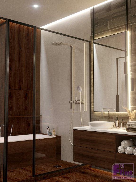 «В ходе перепланировки было решено добавить ещё один санузел за счёт нежилой зоны, — рассказывает автор. — Расположение инженерных коммуникаций здания позволило осуществить данную задумку. Следующим элементом перепланировки стало уменьшение основного санузла, а в освободившейся зоне спроектировали гардеробную хозяев. Заказчики ведут динамичный образ жизни, следят за тенденциями в дизайне. Нам важно было привнести в интерьер черты мегаполиса и личные интересы владельцев, создать лаконичное тактильное пространство».