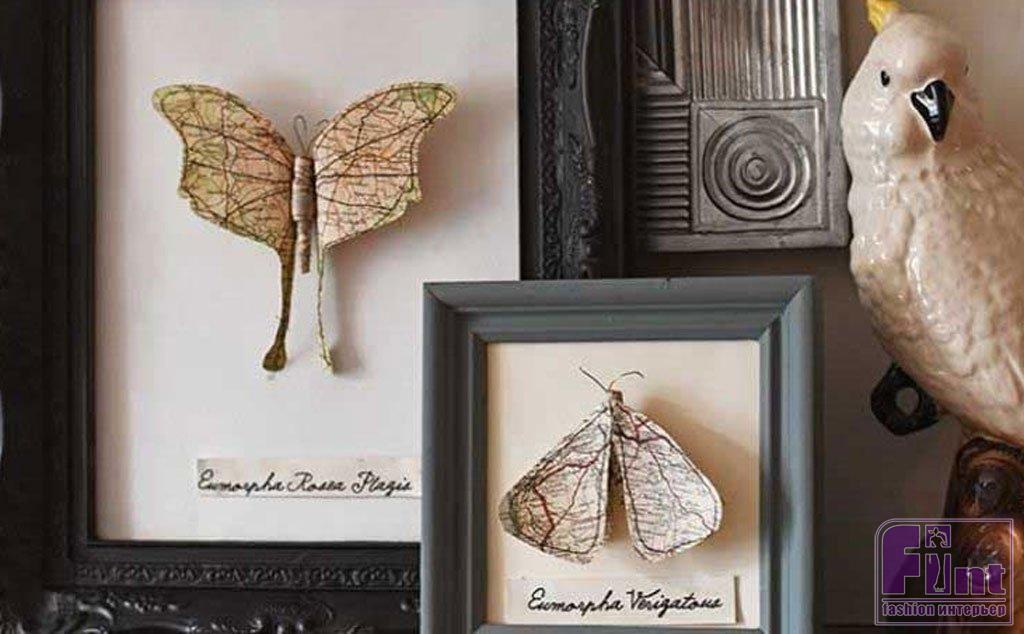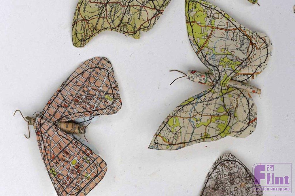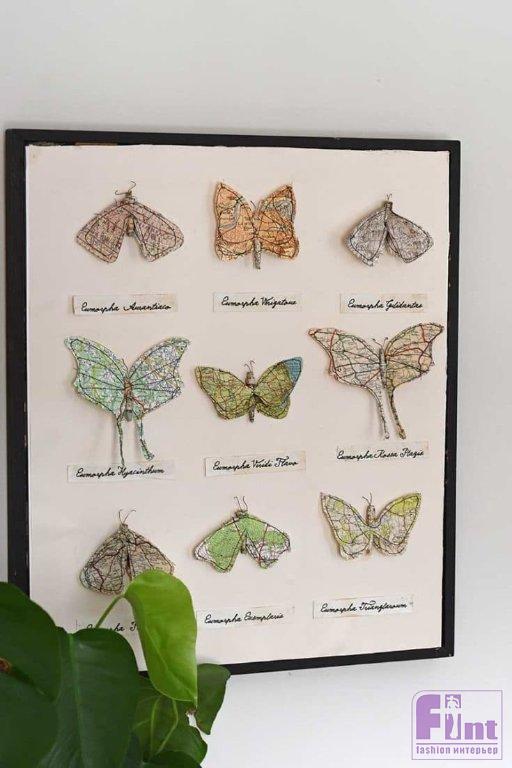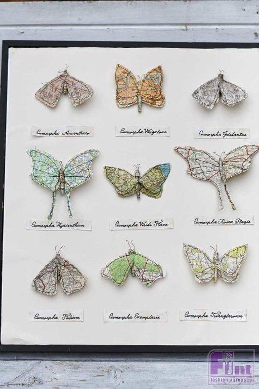 Потрясающее панно с бабочками и мотыльками из географических карт