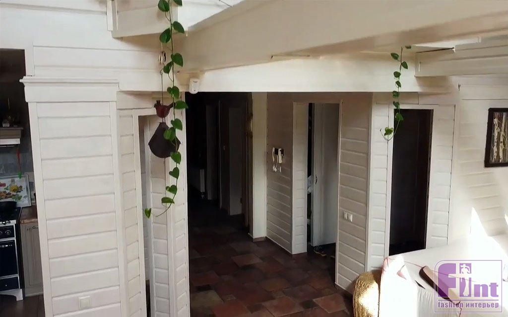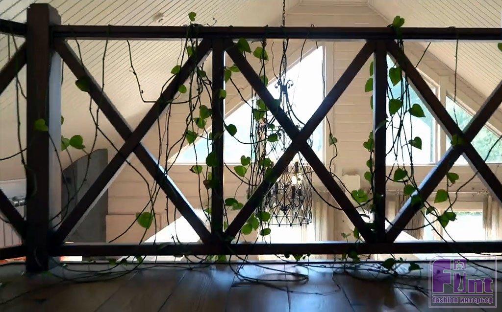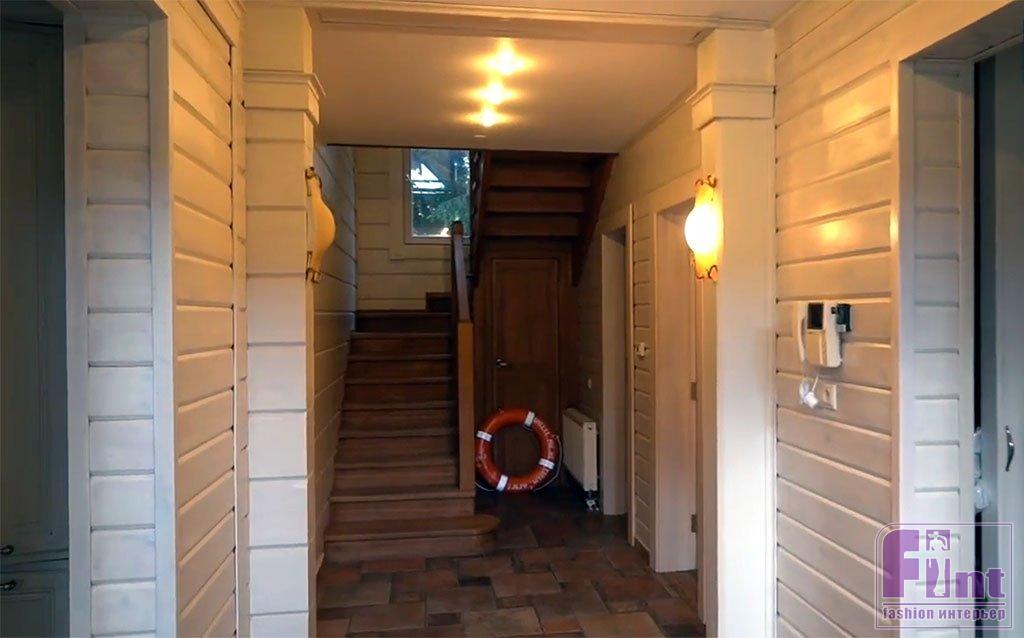 Кухню оформили в ретростиле. Мебель изготовили из массива дуба, дверцы декорировали лаконичными линейными ручками. Верхние шкафчики украсили армированным стеклом. В качестве яркого акцента поставили уникальную плиту в оттенке кобальта. На второй этаж ведёт светлая деревянная лестница с ограждением на американский манер. В холле поставили роскошный дубовый комод, столешницу которого украшает уникальная ладья из массива на подставке. Интерьер спальни Ильи можно назвать мужским. В комнате оставили только самое необходимое: кровать с мягким изголовьем, небольшой шкаф и прикроватные тумбочки-пуфы. В качестве декора выступает необычный вязаный абажур, который создаёт домашнюю атмосферу.