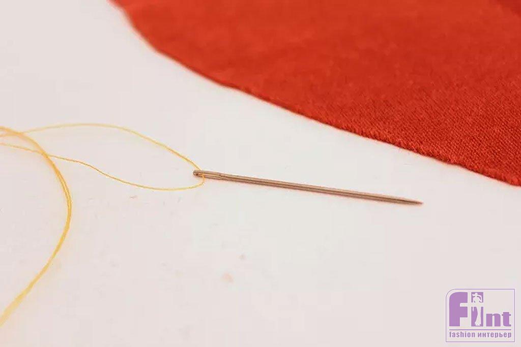 Проденьте нитку в иглу, чтобы у вас была двойная нить длиной около одного метра, и завяжите узел на конце. Попробуйте использовать самую длинную швейную иглу, какую только сможете найти. Мы использовали иглу длиной 5 см.