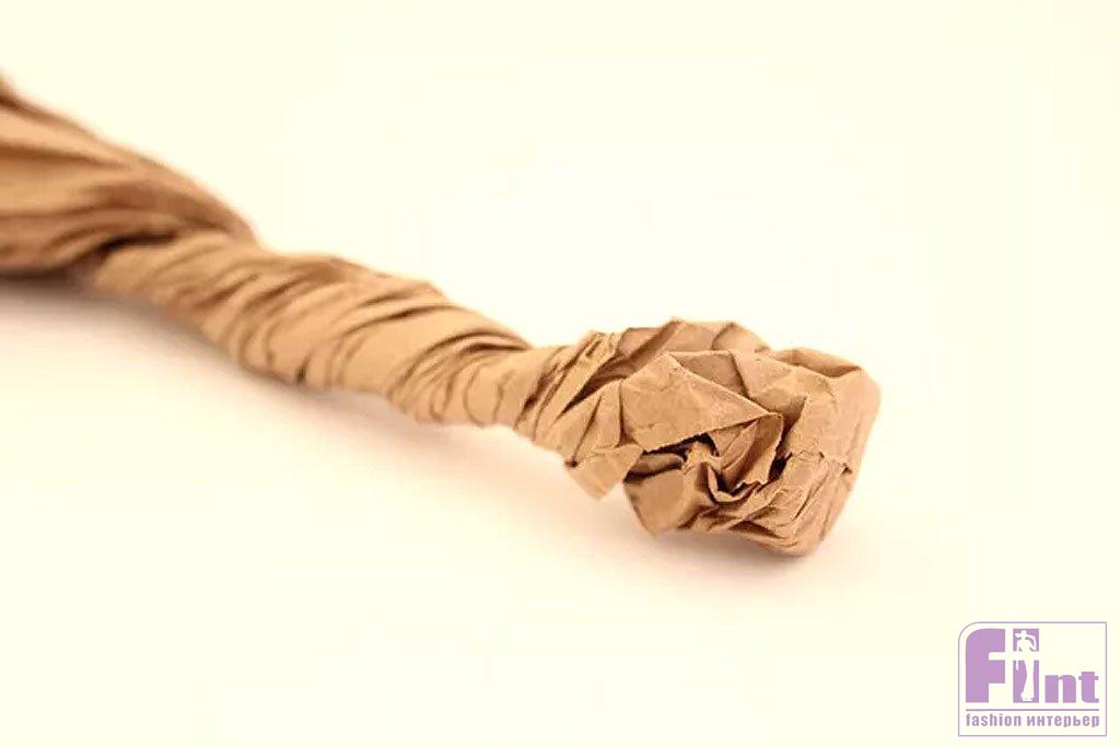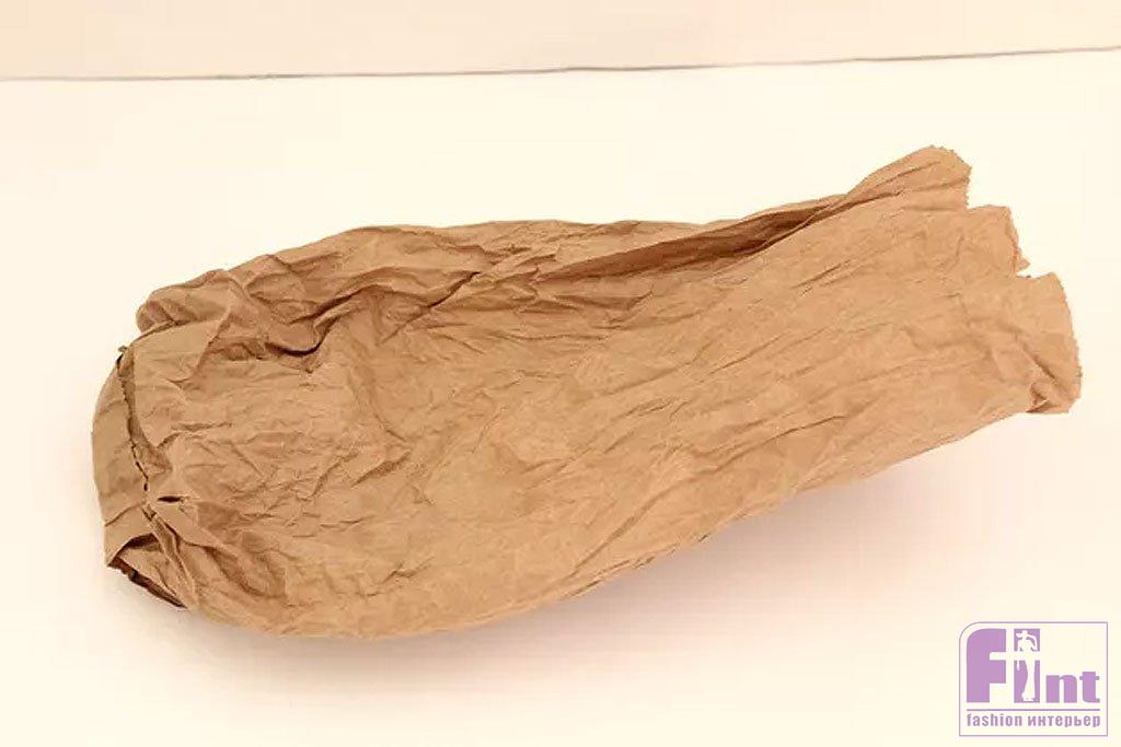 Стебель для наших тыкв будет сделан из самых обычных бумажных пакетов из крафт-бумаги. Сначала несколько раз сомните пакет, пока бумага не станет мягкой и податливой. Конечно, вместо бумажного пакета вы можете использовать срезанную ветку дерева или повторно использовать старый стебель настоящей тыквы. Но эти предметы найти труднее, а бумажный пакет, наверняка есть дома у каждого. Кроме того, такой пакет создаёт очень красивый узловатый скрученный стебель, который смотрится весьма реалистично.