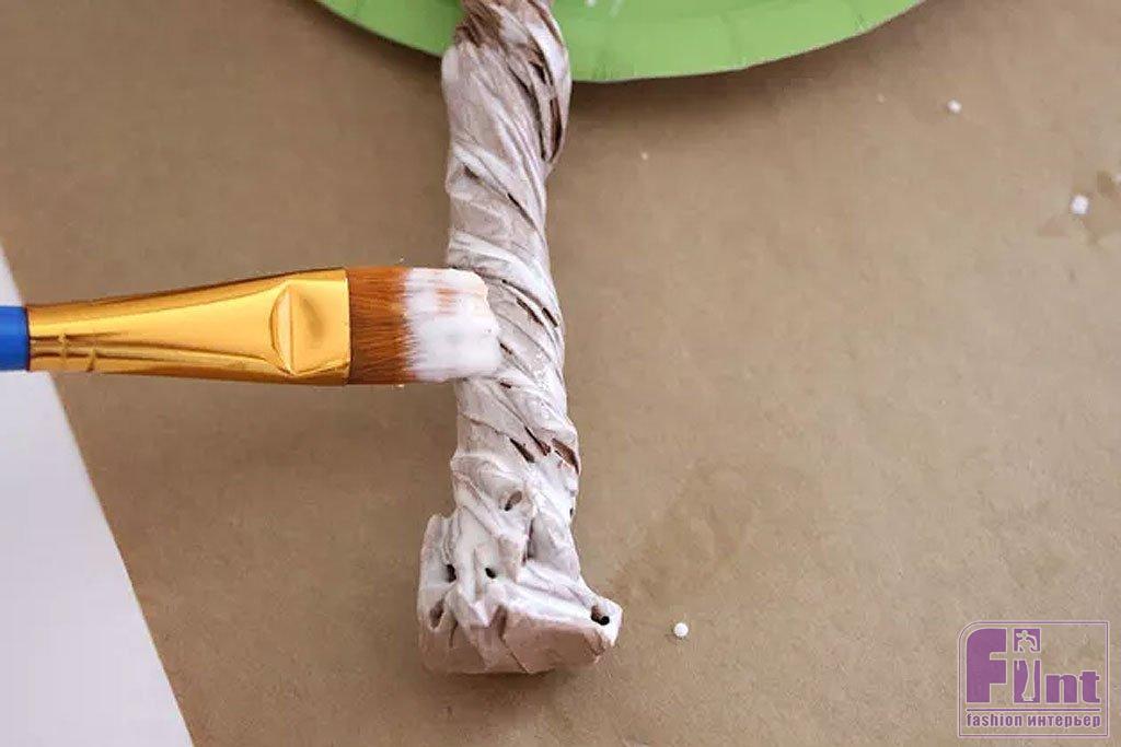 Нанесите 2 - 3 слоя клея-лака для декупажа на получившийся стебель, чтобы придать бумаге жёсткость и защитить её от влаги. Наносите клей-лак примерно на высоту 10-15 см от основания стебля, поскольку более длинный стебель нам не потребуется.