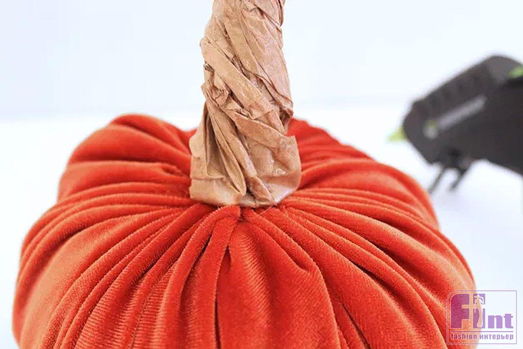 Шаг 8. Прикрепляем стебель к бархатной тыкве.