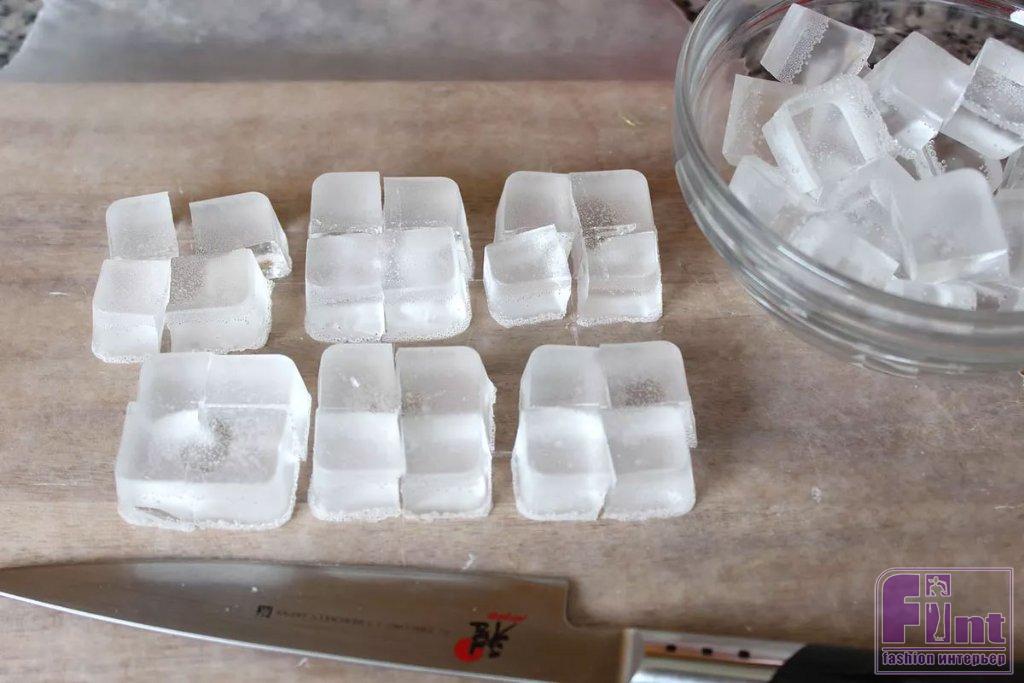 Нарежьте восковые заготовки на кубики поменьше, чтобы получились небольшие кубики льда. В нашем случае мы нарезали кубики со стороной приметно в 2 сантиметра.