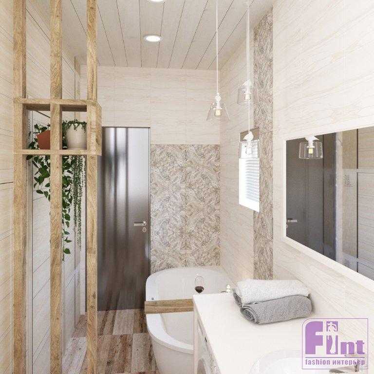В некоторых комнатах деревянные стены были покрашены или зашиты в гипсокартон с последующим добавлением на них контрастной росписи. Натуральную стилистику коттеджа также подчеркнуло половое покрытие: ламинат в комнатах, прихожей и на террасе. Но в то же время в помещениях ощущается атмосфера современности, которую задают простые геометрические формы и прямые линии, искусно подобранные цвета и предметы интерьера.