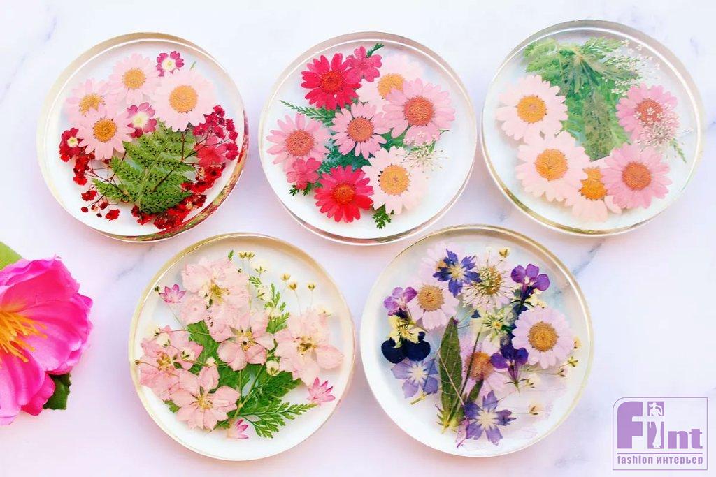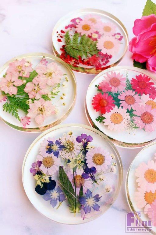 Цветы всегда поднимают настроение всем без исключения. И эти подставки, сделанные из засушенных цветов, определенно добавят нотку яркости и праздника вашему столу, даже до того, как будут поданы напитки. Цветы, заключённые в прозрачную смолу, выглядят так, будто плавают кристально чистой воде. Эти подставки настолько красивы, что они идеально подойдут в качестве подарков или сувениров, для праздничного или даже свадебного стола.