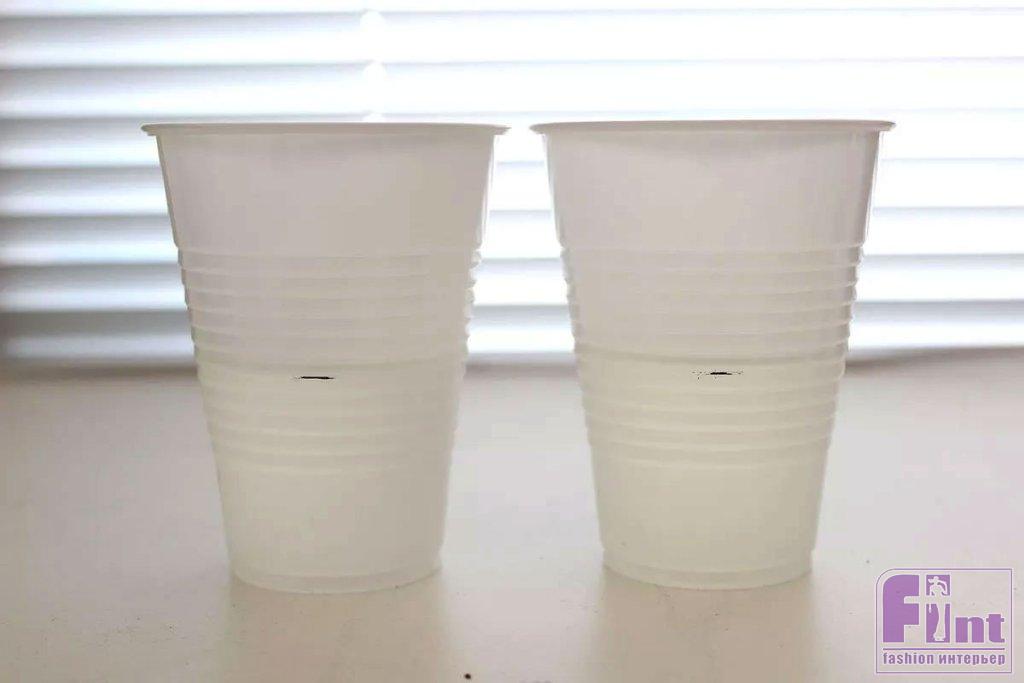 Эпоксидная смола для рукоделия обычно состоит из двух компонентов — самой смолы и отвердителя. Смешивание этих двух компонентов создаёт после затвердевания прозрачный, похожий на стекло материал. Ознакомьтесь с инструкцией по работе со смолой и следуйте ей. Налейте нужное количество смолы и отвердителя в два отдельных пластиковых стаканчика. Для удобства мы отметили на стаканах чёрные линии маркером, чтобы быстрее отмерять нужное количество смолы и отвердителя.