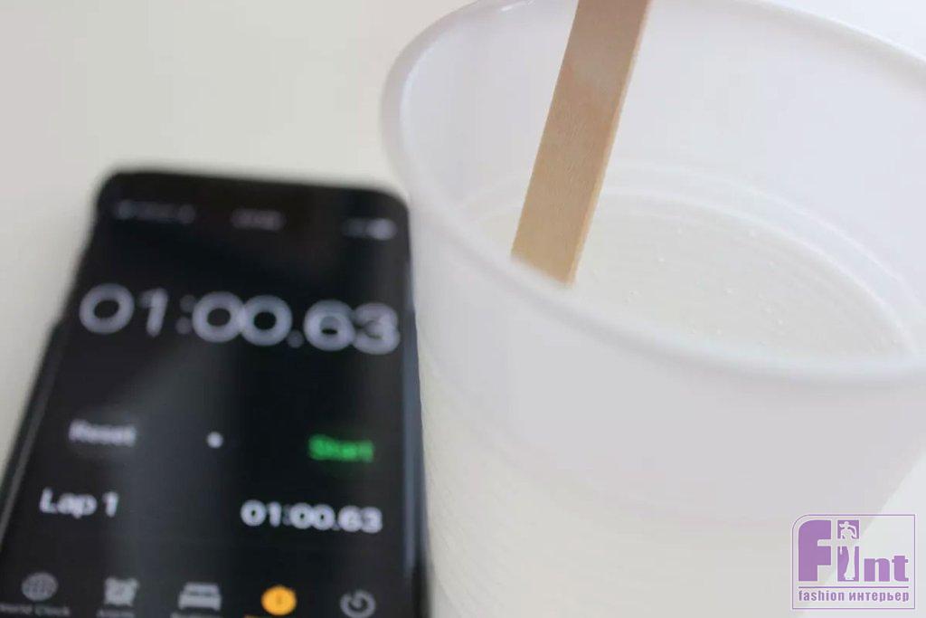Затем перелейте смесь в четвертый, чистый стаканчик, и перемешивайте ещё минуту новой чистой палочкой.