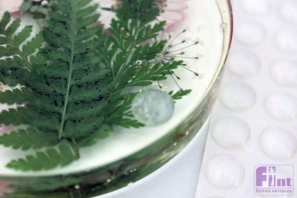 Шаг 6: Добавляем в смолу сухие цветы и листья.