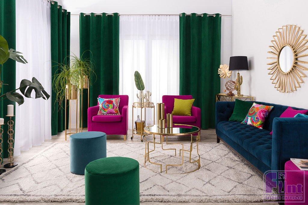 Не оставляйте занавеску в одиночестве. Её цвет обязательно должен перекликаться либо с другим текстилем, либо с элементами декора или отделки помещения. Например, синие шторы + синяя обивка мебели + синяя люстра, и пр. Кстати, раньше весьма модно было шить декоративные подушки из того же материала, что и шторы. Сейчас этот приём уже не считается актуальным и используется довольно редко, и лишь по требованию заказчика.