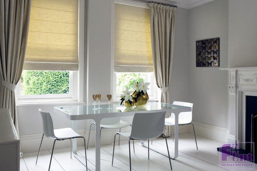 В светлом лёгком интерьере тёмные портьеры сразу смещают акцент в сторону окна, и какой бы вы ни сделали интересный дизайн, он затеряется на фоне тёмных портьер. Если нужно затемнить спальню или другое помещение на время сна – обратите внимание на римские шторы дополнительно к основным портьерам. Или выбирайте более светлые варианты штор, но изготовленные по технологии «blackout».