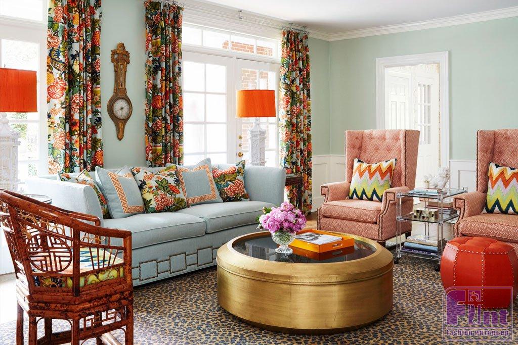 Пейсли, а в простонародье огурцы, дизайнеры не советуют сочетать с цветочным принтом. Особенно если он такой же мелкий, как и пейсли. Добавьте к огурцам немного строгого геометрического орнамента, и интерьер сразу заиграет по-новому. Учитывая, что пейсли обычно представляет собой довольно мощный цветовой акцент, то для его окружения следует подбирать что-то менее вызывающее в плане яркости и пестроты.