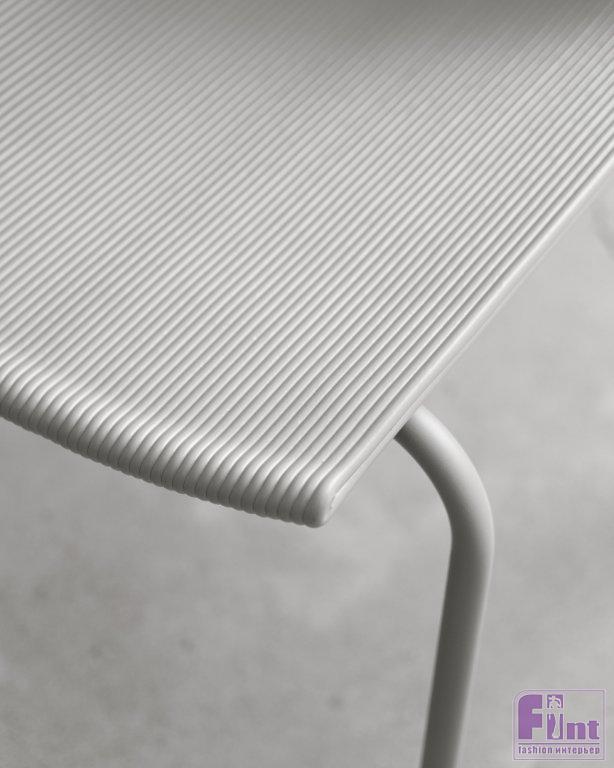 В настоящий момент стул доступен только в одной цветовой гамме – светло-серой. Это связано с технологией переработки пластика и с отказом производителей вводить в исходные компоненты искусственные красители. Стул благодаря металлической основе, окрашенной в такой же серый цвет, как и сидение и самому пластиковому сидению отлично подходит для использования на улице, поскольку этим материалам не страшны суровые погодные условия.