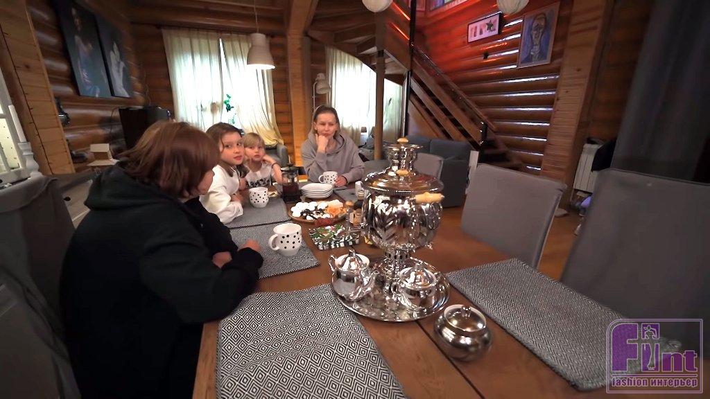 Загородный дом Юлии Пересвильд двухэтажный с утеплённой мансардой: на первом этаже – просторная столовая, гостиная, кухня. На стенах вдоль деревянной лестницы детские рисунки: 12-летней Анны и 8-летней Маши Пересильд. Дочери Юлии Пересильд и режиссера Алексея Учителя носят фамилию актрисы – так случилось из-за её обещания дедушке сохранить необычную семейную фамилию.
