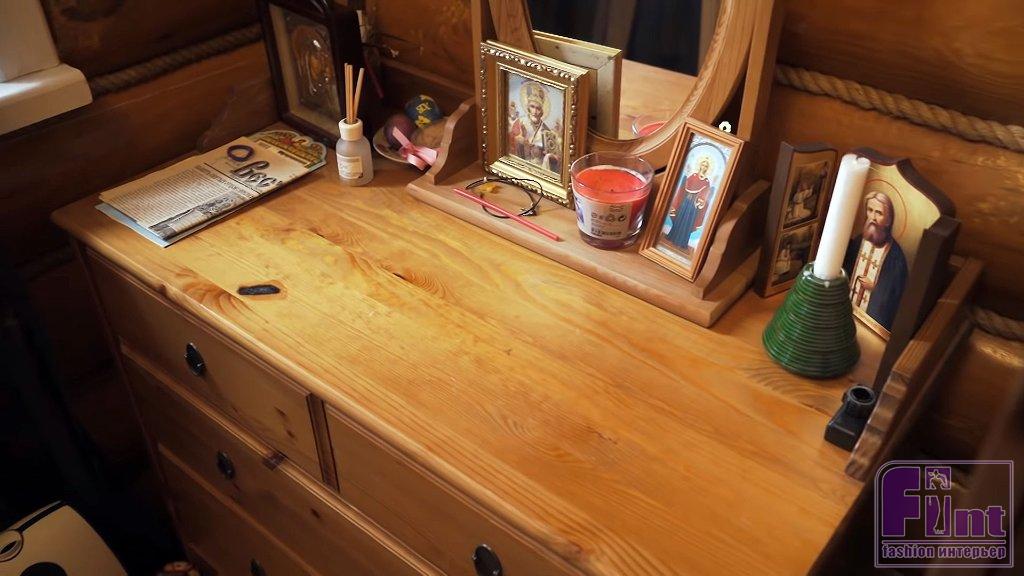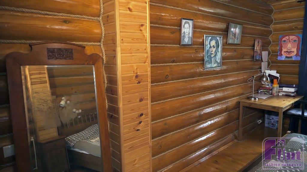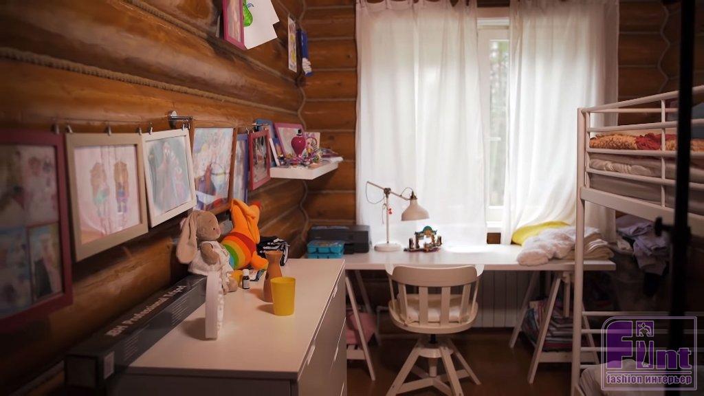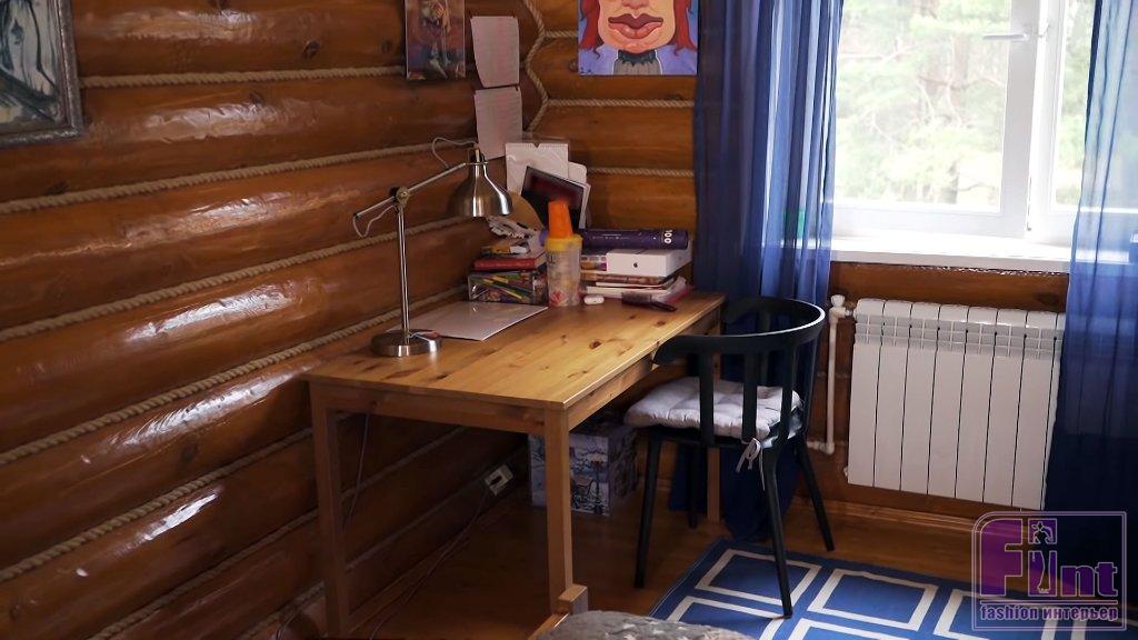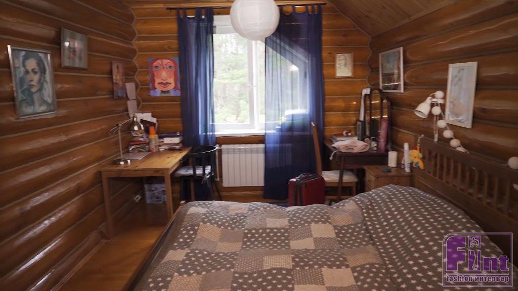 На втором этаже две спальни, детская и гостевая комнаты. В спальне хозяев: кровать, комод, стол, шкаф – вся мебель деревянная. «Это зеркало 1800-го года и старинный комод подарила моя подруга. Люблю примитивизм в интерьере, простой русский или скандинавский стиль», – говорит Юля. В детской двухъярусные кровати, столы и шкафчики – всё функциональное и удобное для детей.