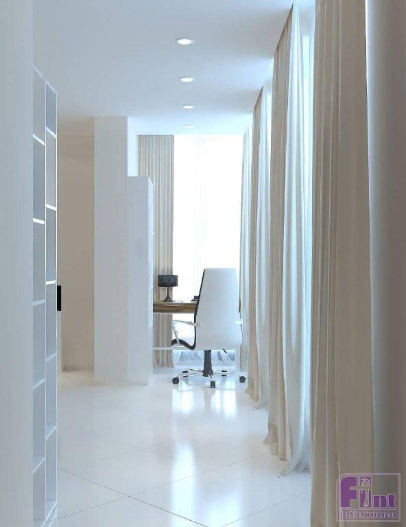 На примере проекта Артема Ткачука видно, как тотальный белый цвет отделки квартиры визуально стирает границы пространства, создавая ощущение бесконечности. Добиться такого эффекта помогает и освещение. Комнаты залиты естественным светом из окон, который отражается в глянцевых поверхностях пола и мебели, а тёмные уголки квартиры подсвечиваются незаметными глазу точечными светильниками.
