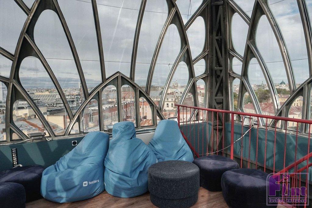 Основная достопримечательность нового пространства – стеклянный купол. В него ведет небольшая лестница, даже не винтовая, а с прямыми пролётами и одной площадкой. Внутри купола расположено небольшое помещение с подушками и потрясающим панорамным видом на Северную Столицу. Из этого помещения видно и купол знаменитого на весь Санкт-Петербург дома Зингера, в котором находится первый офис соцсети. Купола, по замыслу дизайнеров, могут «переговариваются» между собой с помощью специальной подсветки. Второй офис в Петербурге, получивший премию Best Office Awards SPb, открылся в бизнес-центре «У Красного моста» на набережной Мойки, 73-79.