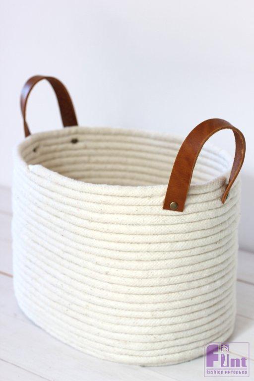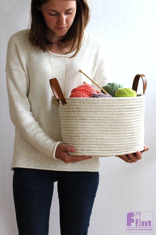 Наверняка многие из вас видели в продаже аналогичные корзины, которые можно купить в различных магазинах товаров для дома. Сделанные из мягких натуральных верёвок, такие корзинки способны одним своим присутствием добавить интерьеру неповторимый уют и домашнюю теплоту. К сожалению, подобные изделия, независимо от их размера, стоят недёшево, поскольку почти всегда – это ручная работа. Мы же предлагаем вам с минимальными затратами сделать такую замечательную корзину своими руками, используя в качестве основы самую обычную хлопчатобумажную верёвку, которую можно без труда купить в любом хозяйственном магазине или на рынке.