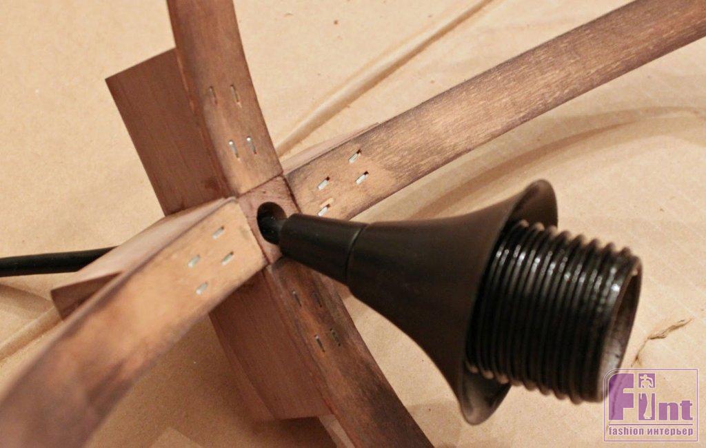 Осталось лишь пропустить сетевой шнур от подвесного светильника сквозь отверстие в бруске и вашу стильную люстру можно вешать!