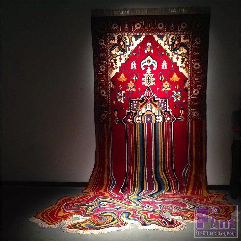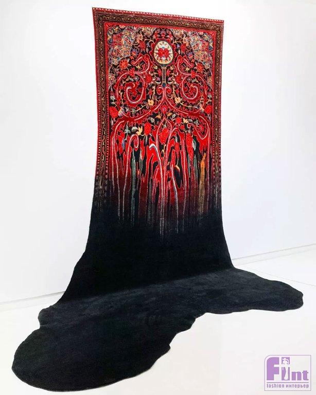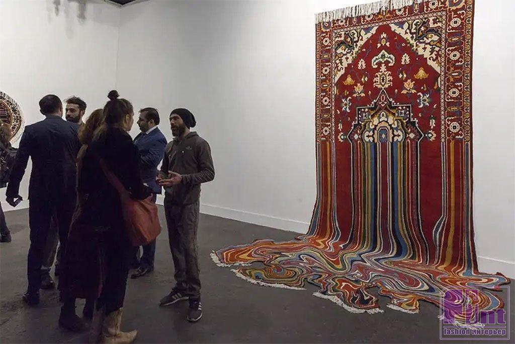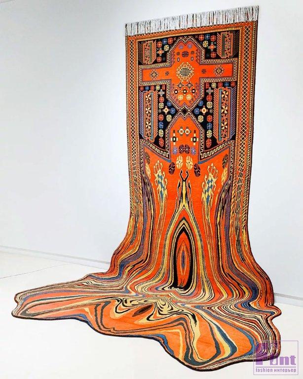 Азербайджанский художник Фаиг Ахмед собрал серию ковров, стирающих границы цифрового искусства и традиционных ремесленных техник. Монументальные по размеру произведения сотканы с классическими декоративными узорами, которые трансформируются в «лужи» перекошенных линий.
