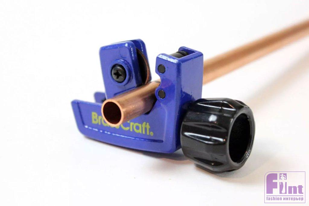 Используя труборез, который обычно можно найти в том же отделе магазина сантехники, что и медную трубку, разрежьте трубку в отмеченных местах, чтобы получилось 8 кусочков в 2,5 см и один отрезок в 7 см.Даже если вы никогда не пользовались труборезом, им довольно легко работать.Поместите медную трубку в резак, затяните винт и вращайте резак вокруг трубки.Лезвие вращающегося резака врезается в металл до тех пор, пока он не истончится, и его можно будет легко отломить. Если же у вас не оказалось под рукой специального резака, трубки можно отпилить самой обычной ножовкой по металлу.