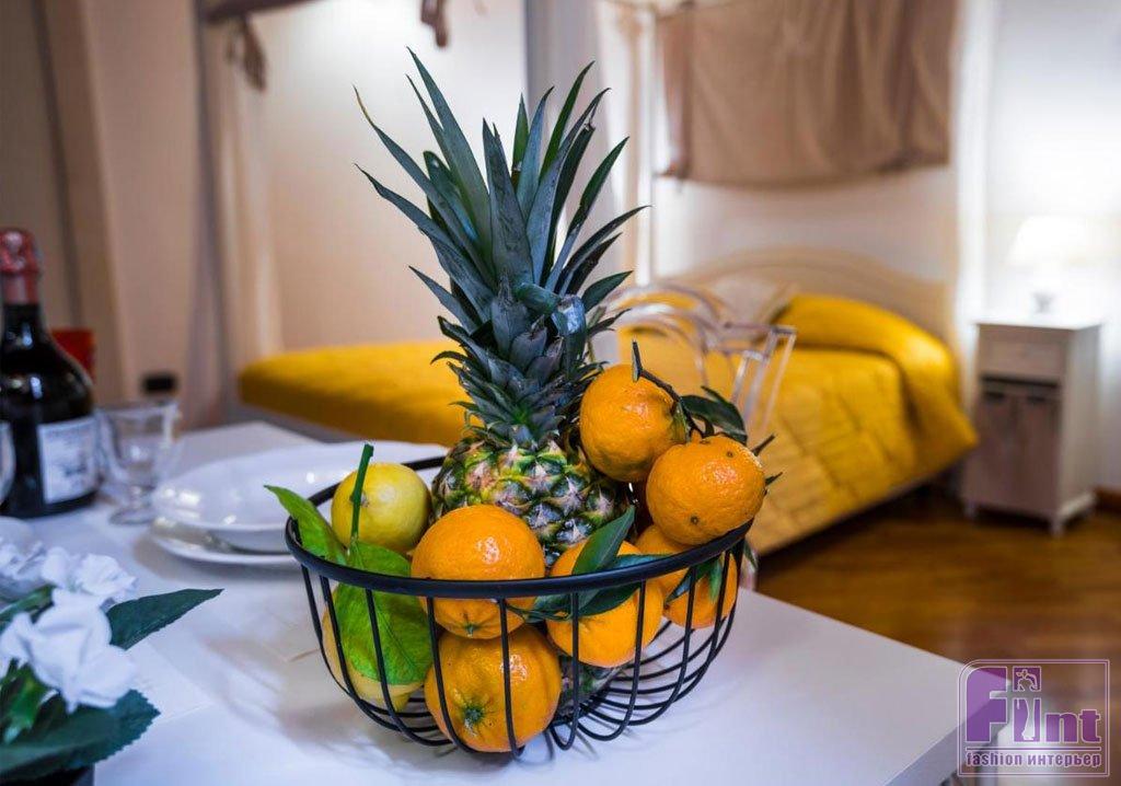 Цветы, фрукты и овощи можно использовать в качестве декора. Например, апельсины или маленькие тыквы будут отлично смотреться в чаше из металлических прутьев или стеклянной вазе. Также напомнить о том, что зимой жизнь не замирает, помогут живые цветы. В качестве альтернативы можно рассмотреть сухоцветы. Они не нуждаются в уходе и имеют долгий срок службы. Являясь дарами природы, цветы, фрукты и овощи отлично сочетаются друг с другом, и из них можно создавать довольно масштабные композиции. Помещённые в красивую плетёную корзину, цветы, фрукты и овощи способны добавить вашему интерьеру очень мощный цветовой акцент.