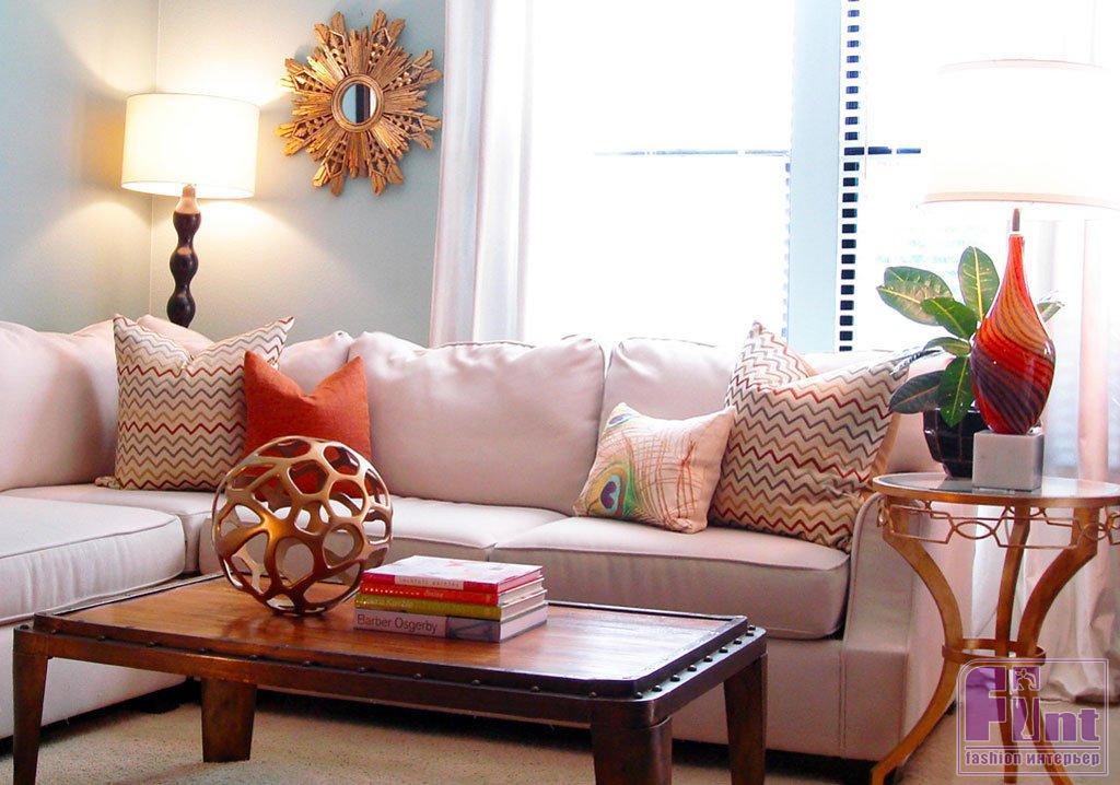 Один из самых простых способов оживить интерьер — поменять текстиль. Можно остановиться на декоративных подушках, постельном белье, салфетках на кухне, или же прибегнуть к более ощутимым изменениям — подобрать новый ковёр или шторы. Необычным решением может стать гобелен, размещённый на свободной стене. В качестве необычного использования текстильных элементов можно попробовать создание панно из любимых платков. Помещённые в красивые рамки, платки способны до неузнаваемости преобразить ваш интерьер.